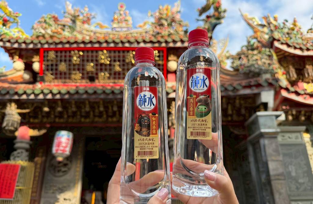 泰山純水再度與北港武德宮合作,推出 2026 年新春開運限定包裝,於超商與量販通路陸續販售。此次瓶身設計結合財神信仰元素,並延續泰山純水高溫煮沸製程特色,讓日常飲水結合年節祝福意涵。泰山表示此次聯名亦讓雙方吉祥物首次同框亮相,分別象徵事業順利與新年好運,產品以兩瓶一組販售,呼應民俗中「雙數」象徵圓滿的概念。除此泰山也邀請命理師林霖分享 2026 丙午馬年與補財庫相關的民俗觀點,說明常見的三個時間節點與發財水的運用方式,提供消費者作為年節習俗參考。