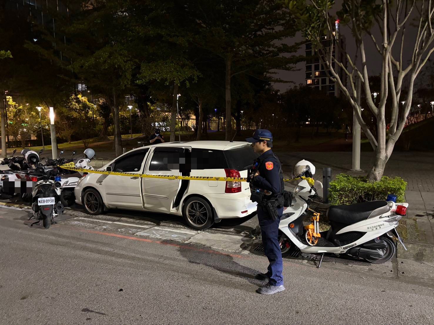 新莊一名男子與家人失聯後被在車內昏迷,送醫急救不治,警方封鎖現場勘驗採證。翻攝畫面
