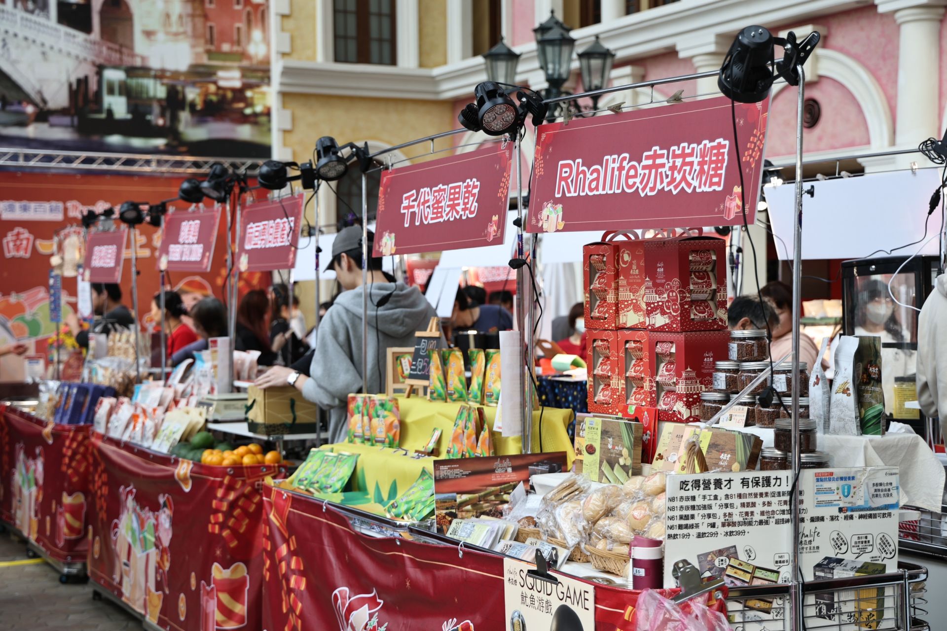 ▲年節展售活動於板橋大遠百熱鬧登場,集結台南在地小農與業者,展售多樣農產加工品與年節伴手禮,吸引民眾駐足選購。(新聞處 提供)