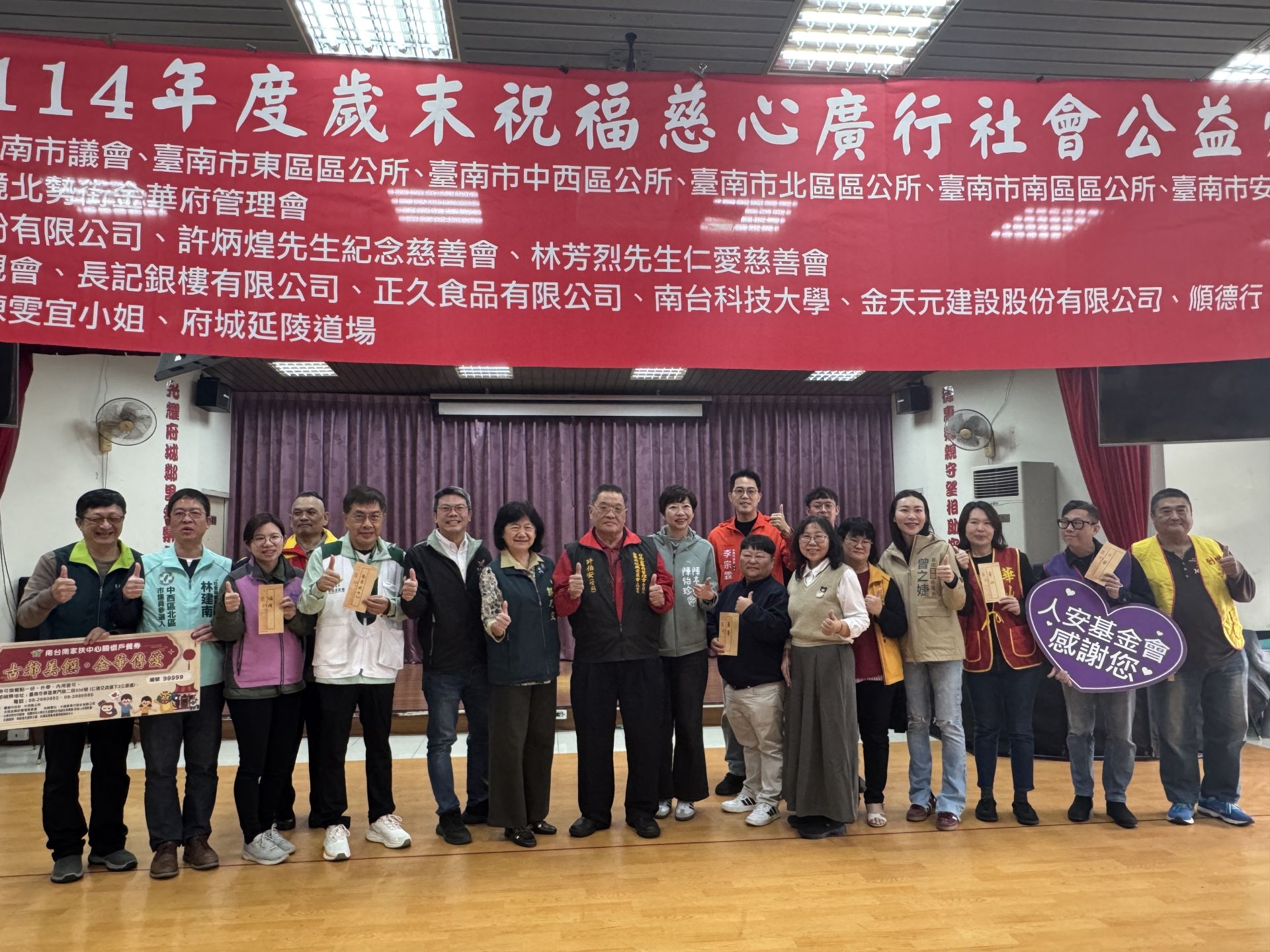 台南府城年度公益盛事再度登場。台灣府城神農街金華府長期推動的「愛心轎」府城巡歷活動,今年邁入第13年,持續秉持慈悲濟世、回饋社會的宗教精神,於115年1月25日假台南市東區崇德路111號東區德光里活動中心,隆重舉辦「慈心廣行」社會公益活動,擴大關懷府城各行政區弱勢族群,將溫暖與希望送到更多需要幫助的家庭與社福團體。活動現場社會局長郭乃文、市議員曾之婕、陳怡珍、李宗霖及中西區、北區參選人林建南都到場共襄盛舉。