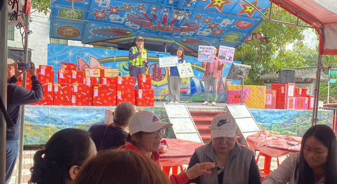 【視傳媒╱記者 林秀貞 台東報導】 為提升社區居民防詐騙意識及交通安全觀念,臺東縣警察局關山分局鹿野分駐所把握地方聚會契機,於昨(24)日上午10時至12時,前往鹿野鄉龍田活動中心前廣場,結合「龍田社區發展協會會員大會暨年終饗宴尾牙活動」,在溫馨熱鬧的氣氛中辦理防詐騙及交通安全宣講,獲得現場民眾熱烈回響。