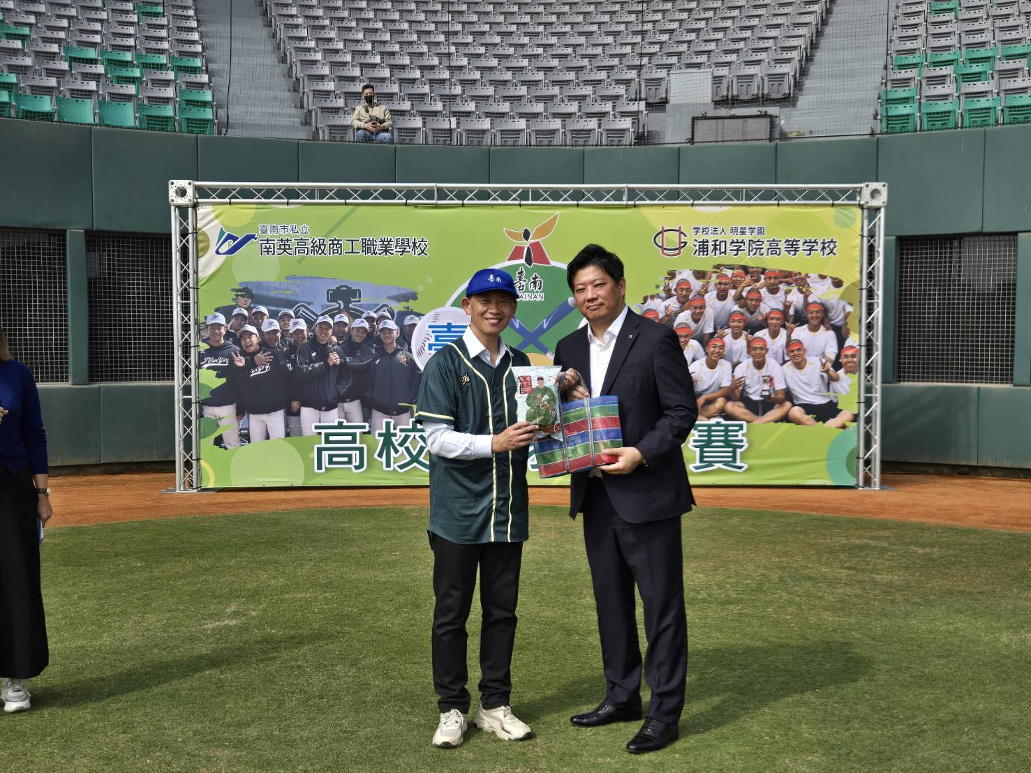 副市長葉澤山表示,臺南市與浦和學院高校互動友好,不僅展現臺日高校棒球交流的穩定成果,也象徵雙方以運動深化友誼。市府特別準備多款具臺南特色的伴手禮致贈日方,包括臺南在地聯名「巷仔貓果酥禮盒」、融合歷史意象的「鄭成功洋芋片」,以及象徵祝福寓意的「媽祖賜福(義美小泡芙)」,讓日本選手在球場內外都能感受臺南滿滿的熱情與人情味。
