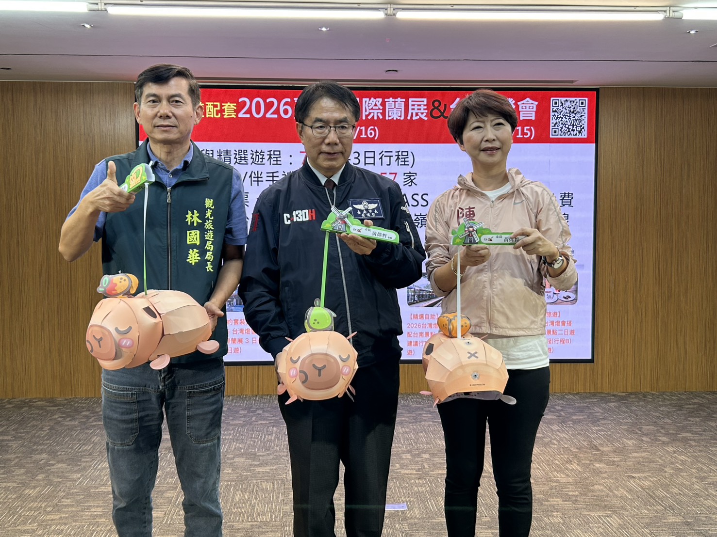 市長黃偉哲於記者會表示,台南推出結合芒果、桔子與柚子寓意的「卡比胖拉」小提燈,主打本土藝術家創作,可望吸引親子族群。搭配台灣國際蘭展與鄰近的台灣燈會,可白天賞花、夜晚賞燈,帶動溪北旅遊。