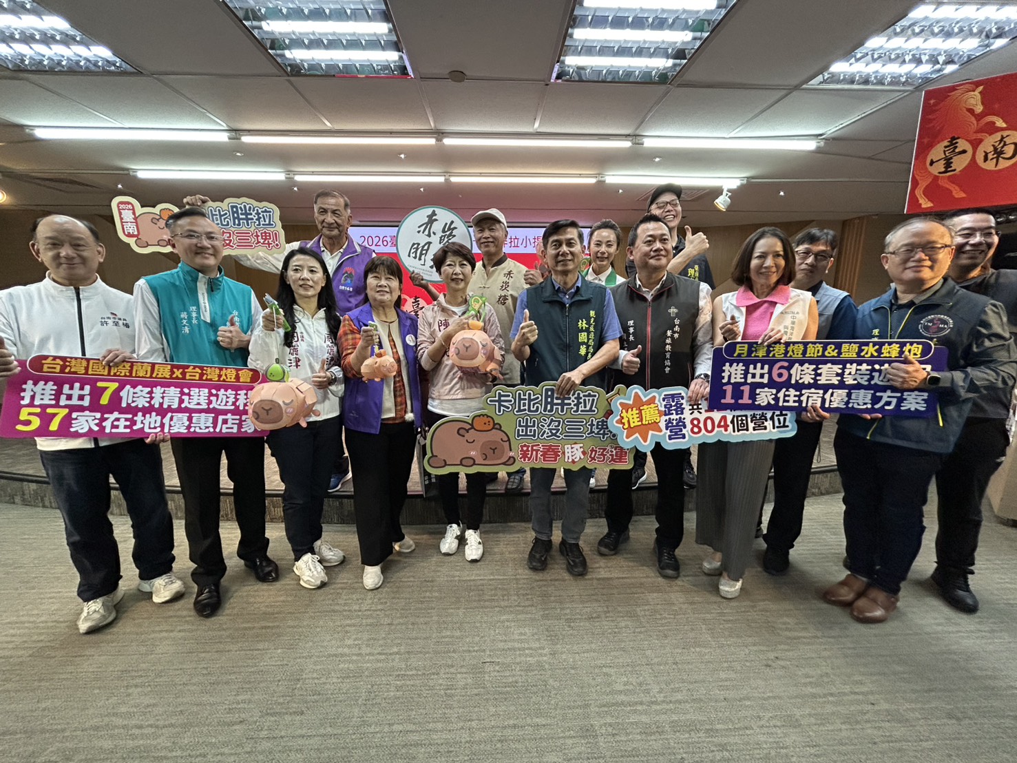 春節將至,台南市政府今(13)日透過記者會宣布「2026台南行春」活動網站正式上線,整合超過百項展覽、燈會、花海等活動及交通資訊,提供民眾一站式查詢服務。現場也發表台南限定「卡比胖拉小提燈」,將於2月27、28日於虎頭埤風景區、葫蘆埤自然公園及德元埤荷蘭村限量發送,邀請全國民眾從春節一路玩到元宵,感受台南旅遊魅力。